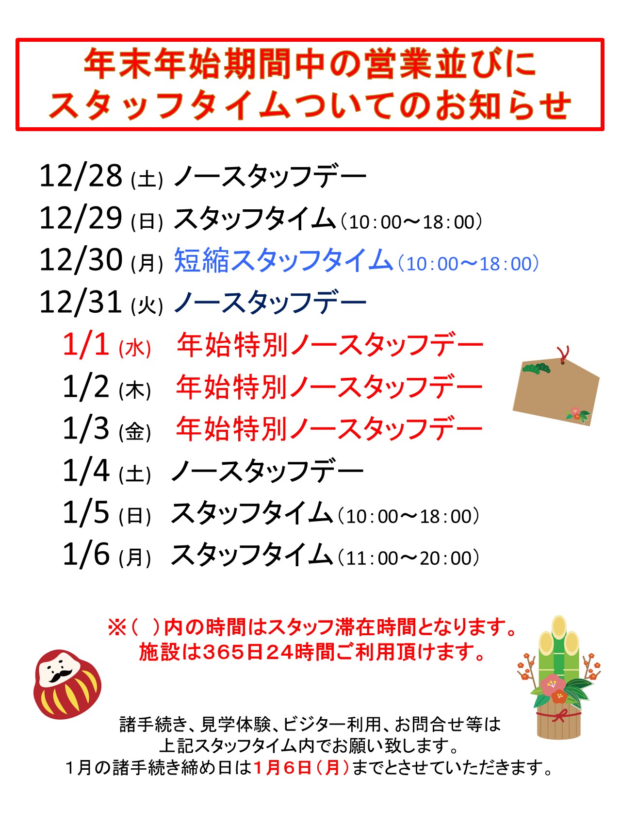 年末年始のスタッフタイムについて
